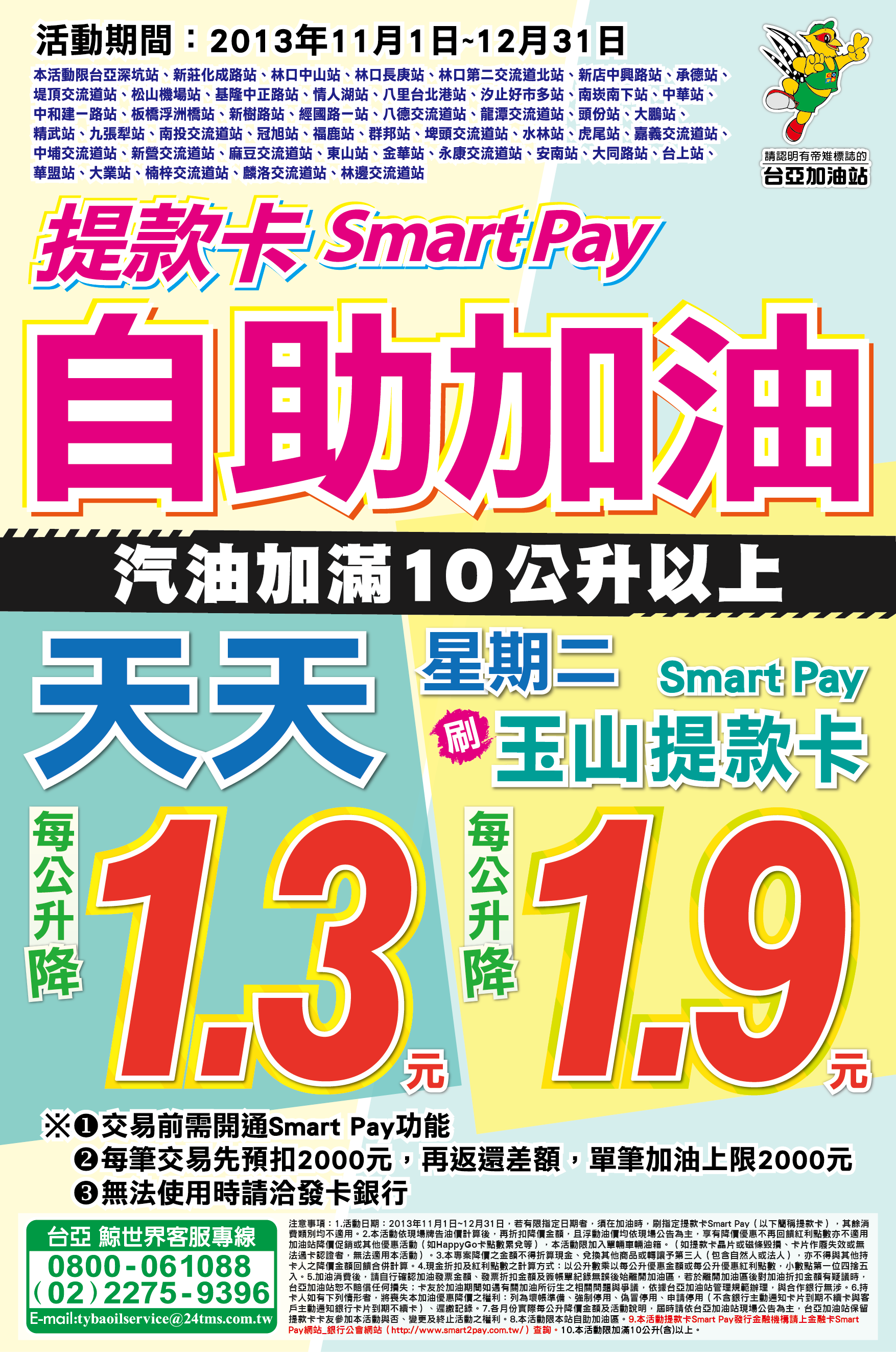 提款卡Smart Pay 自助加油優惠(限指定加油站使用)